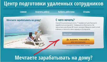 Для начала Вам необходимо определиться, какую именно работу будет удобно выполнять именно Вам. Для этого предлагаю абсолютно бесплатно скачать книгу "7 профессий для быстрого заработка в интернете". Для этого зайдите на сайт тренинг центра РаботаДома, введите емейл и нажмите на кнопку Да, вышлите, пожалуйста, мне инструкцию.